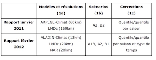 Les « rapports Jouzel » (Peings et al., 2011; 2012) sont une source d’informations climatiques. Le premier rapport présente les changements climatiques futurs à l’échelle de la France, simulés à partir des modèles régionaux français du CNRM- Centre National de Recherches Météorologiques (ARPEGE-Climat) et de l’IPSL- Institut Pierre Simon Laplace (LMDz). Le second complète le premier en présentant les résultats de trois nouveaux modèles du CNRM (ALADIN-Climat), de l'IPSL (LMDz) et du LGGE-Laboratoire de Glaciologie et Géophysique de l’Environnement (MAR).
